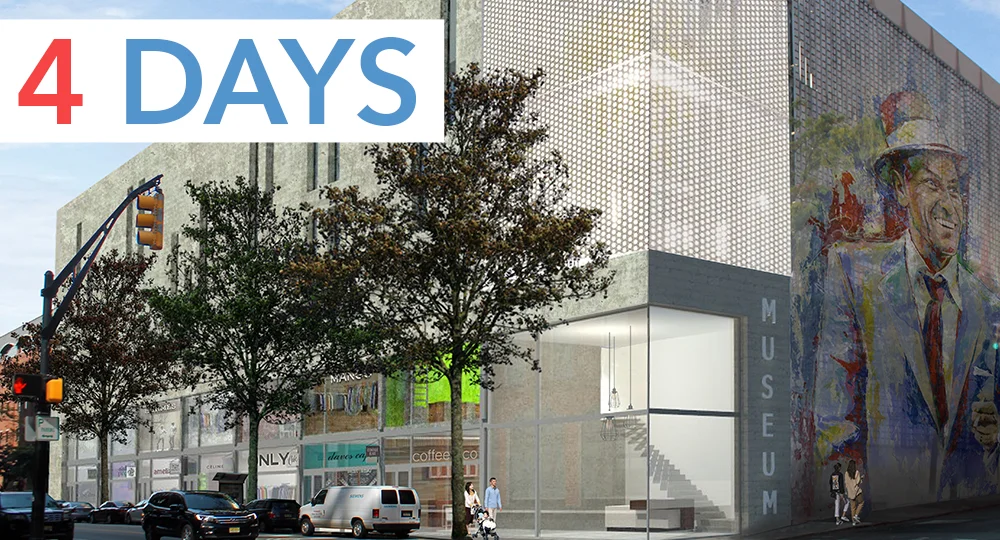 Rendering showing the reface of the River Street side of City Garage B, adding new revenue-generating retail space, a public mural and a non-profit museum.